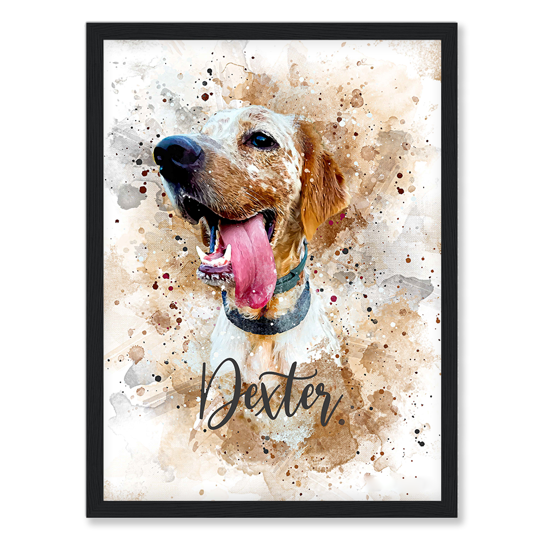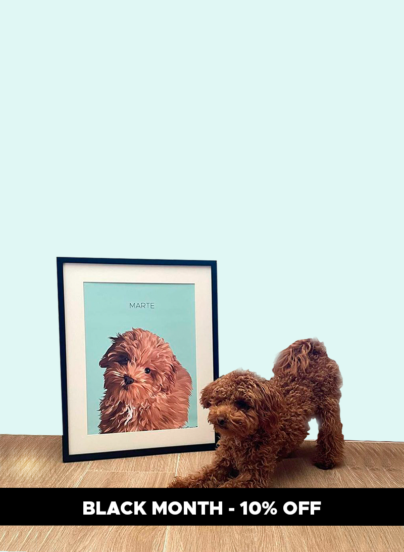Ahora estás a dos sencillos pasos de conseguir tu retrato: elige tu formato preferido y dinos el nombre de tu perro o gato.